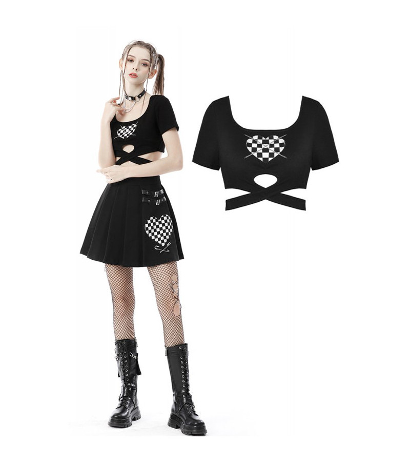 Kawaii crop top with a checkered heart with chains and lacing around the waist.