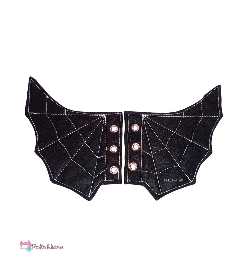 Black gothic bat wings for shoes or for vintage roller skates, with a white spider web design.
