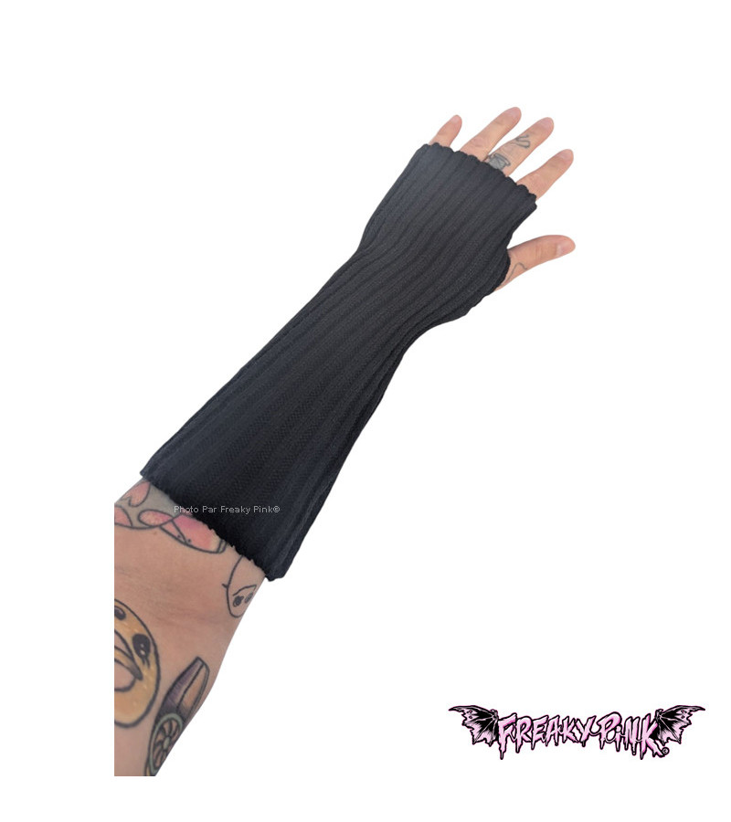 An must have for your gothic look of the day. Our black thick arm warmers are made in a stretch fabric, so they fit all.