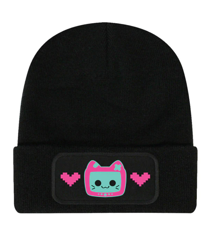 Very cute and retro cat tv with pixel hearts design for the Kitty Pixel beanie.