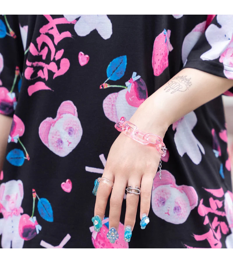 ACDC RAG pastel pink clear chain bracelet. Unisex.
