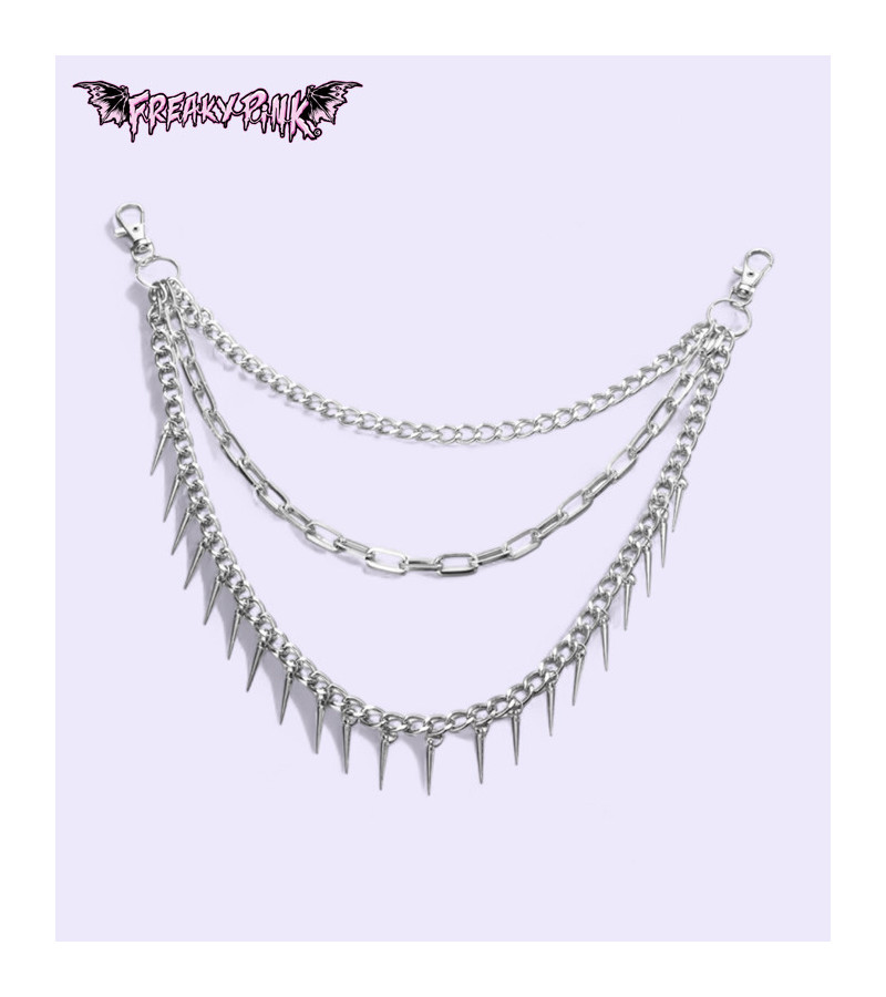 Punk triple chain with long spikes. Perfect to wear with a grunge outfit.