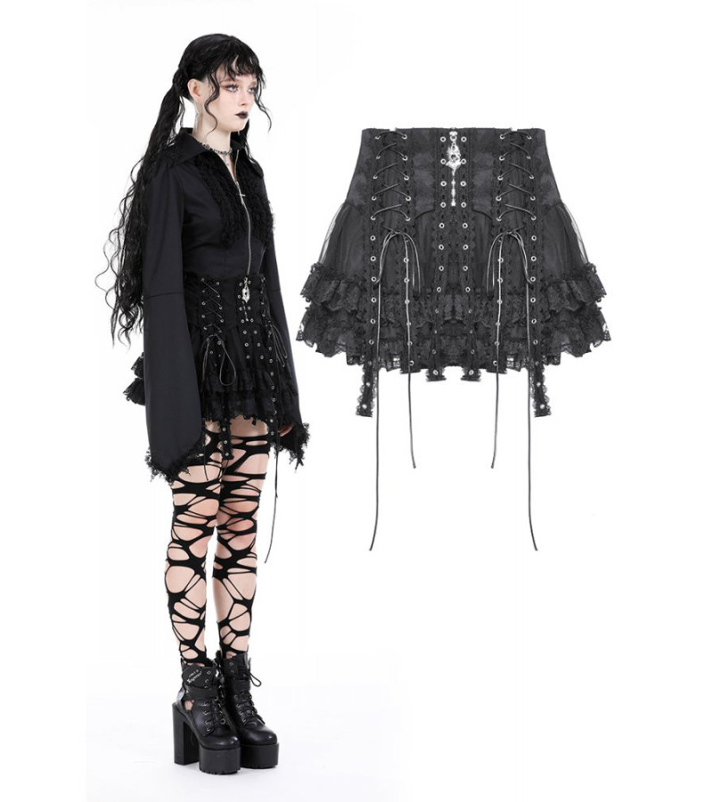 Rebel Black Lace Gothic Skirt With Straps