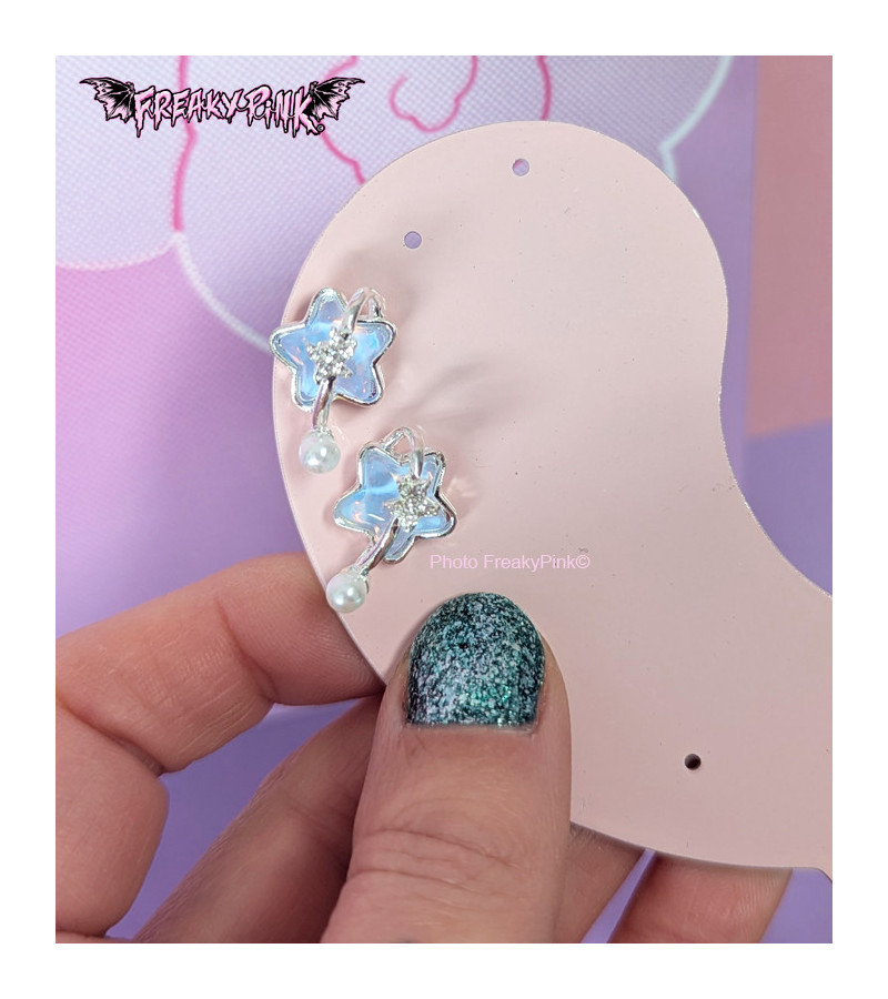 Kawaii blue iridescent stars earrings.