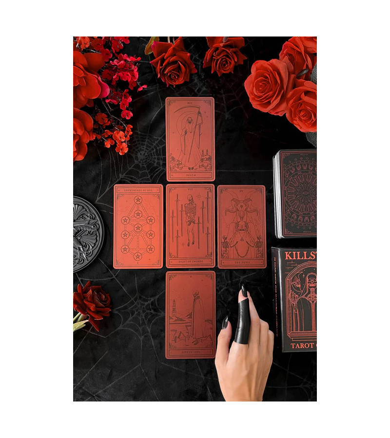 Killstar tarot cards in red and black.