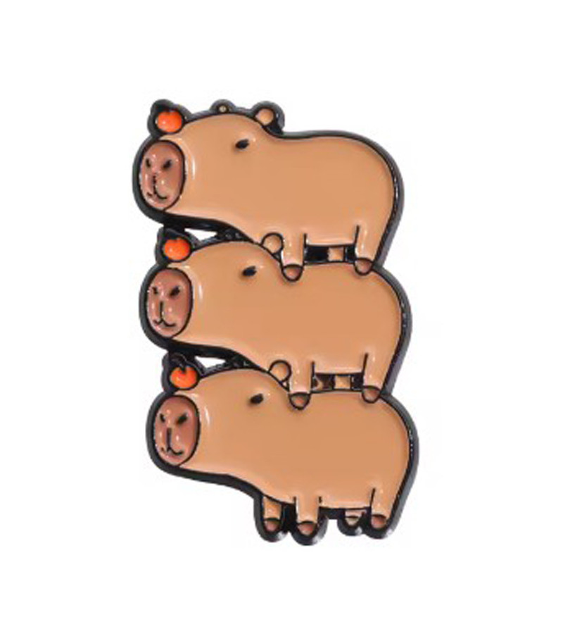 Cute 3 capybaras pin with tangerin on their heads. Black metal pin with black rubber fastening.