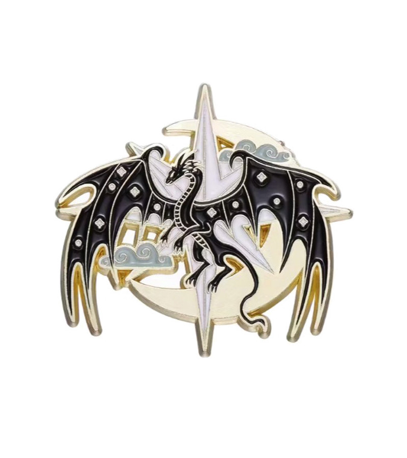 Gothic black dragon pin with golden moon.