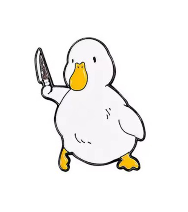 Super dangerous white duck with a knife pin. Metal pin with black rubber fastening.