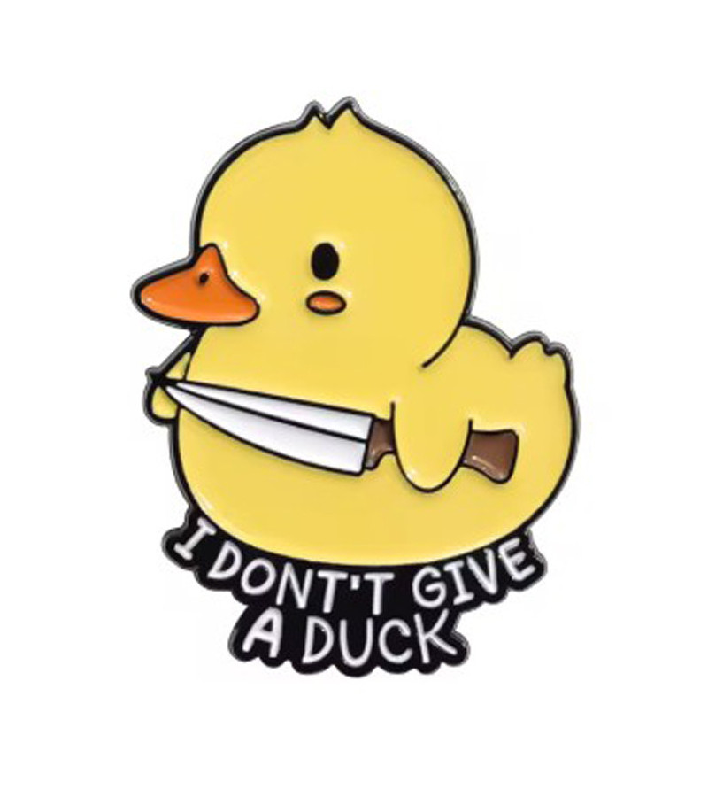 Super dangerous duck pin with a knife and the slogan "I don't give a duck".