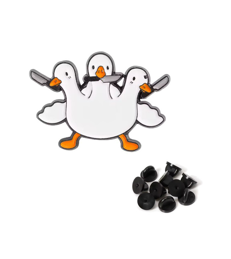 Super dangerous white duck with 3 heads and knives pin. Metal pin with 1 black rubber fastening.