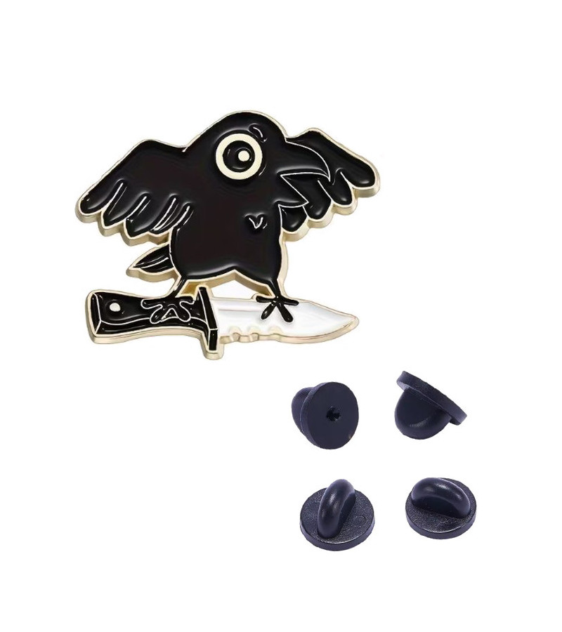 Gothic black crow pin with a knife.