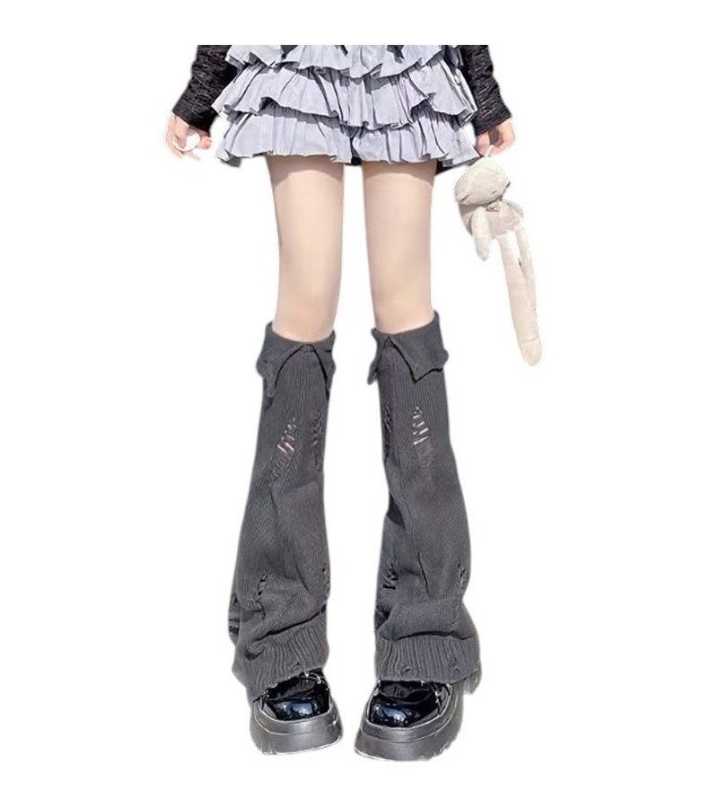 One size and unisex wide destroy leg warmers in grey.