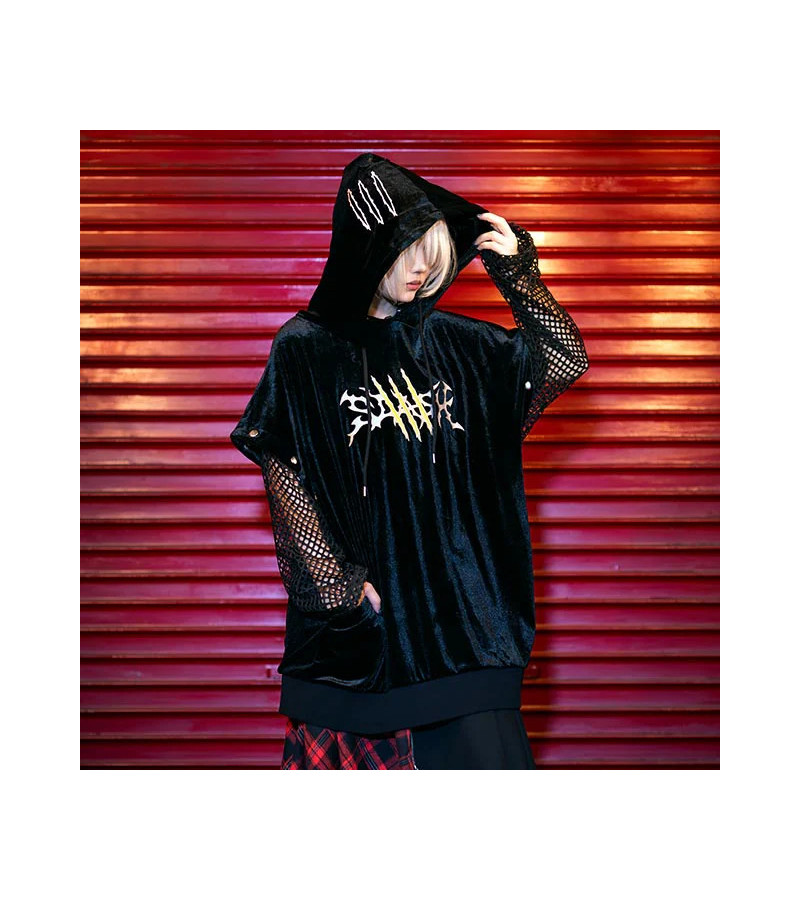 Oversized hoodie with embroidery on the sleeves, the back and front slashes.
