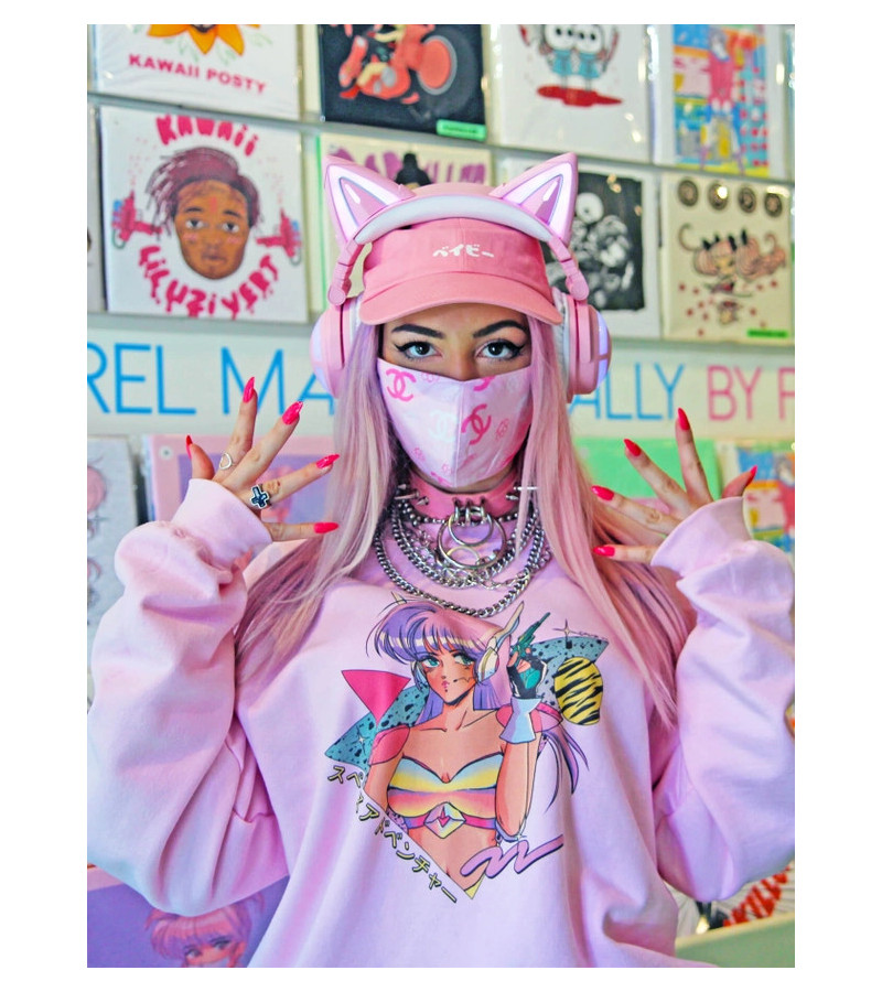 Space Adventure 80's retro anime pastel pink sweat-shirt.