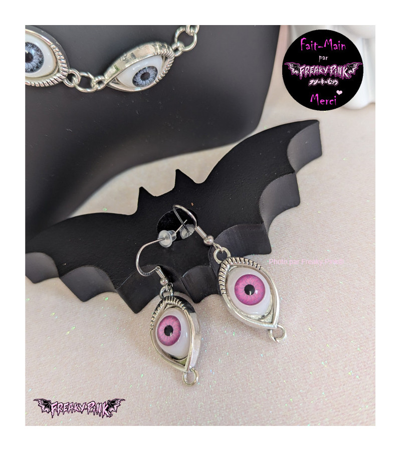 Boucles d'oreilles yeux roses marque Freaky Pink.