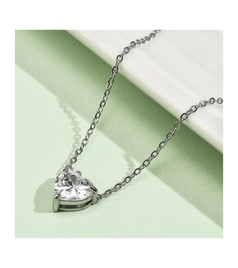 Chaine et pendentif en acier inoxydable 304 avec un zircon cubique blanc.
