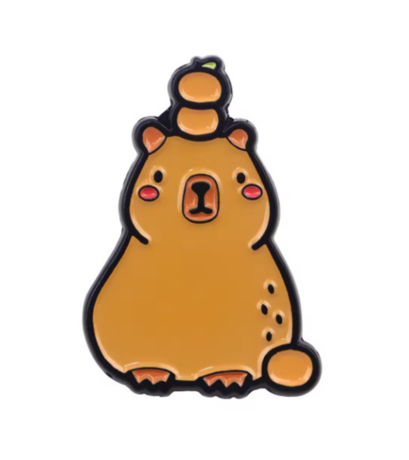 Fan de capybaras ? Tu vas adorer ce pins capybara tout mignon avec des mandarines sur la tête.