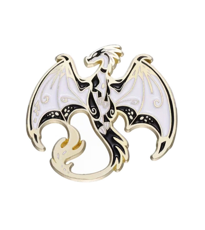 Pins dragon blanc et doré à accrocher sur ton sac à dos, ton ita bag ou ta veste de chez Freaky Pink.