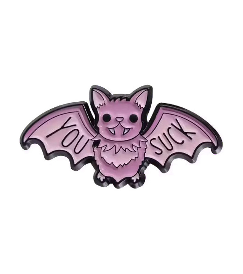 Pins chauve-souris rose avec le slogan You Suck.