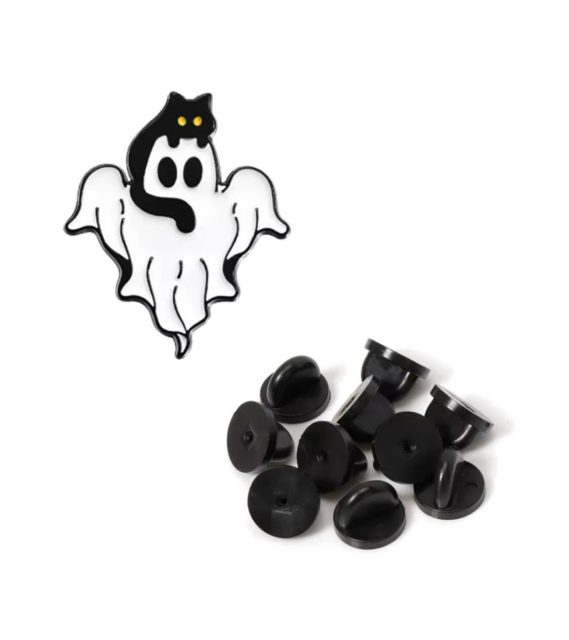 Pins en en métal noir. 1 Fermoir caoutchouc noir.