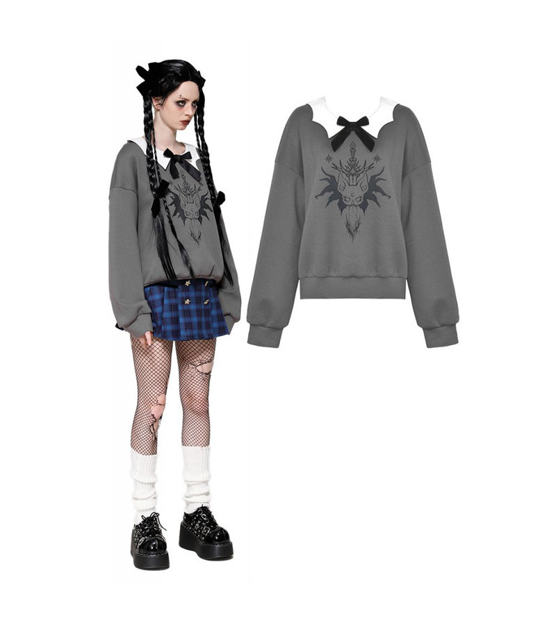 Pull large gris en coton peigné doux, avec un grand col blanc de forme ailes de chauve-souris.