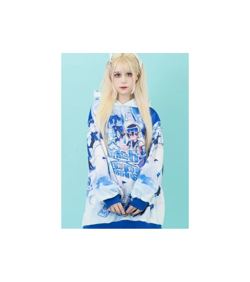 Design Cyber Cat en bleu et blanc en collaboration avec l'artiste " Peach ☆ Punch". Un chouette mix entre la culture des idoles très mignonnes,