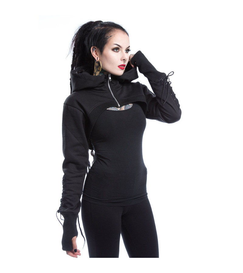 Laçages dans le dos et sur les manches. Manches longues avec trous pour les pouces.